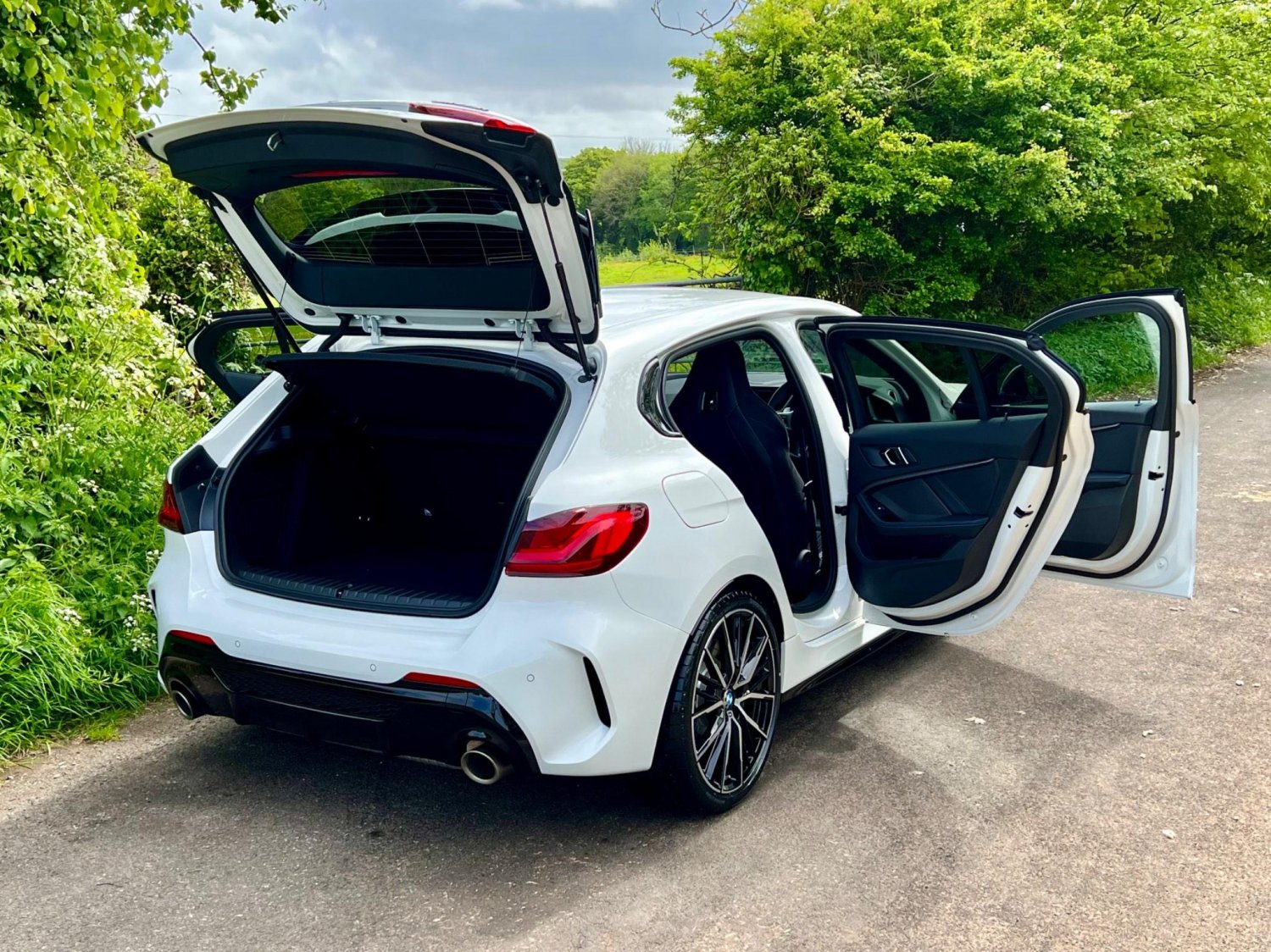 18in Alloy Wheels - M Double-Spoke Style 556 - Bi-Colour, Active Guard Plus, Air Conditioning Automatic with Two-Zone Control, Airbags, Alarm System - Thatcham 1 with Remote Control and Engine Immobiliser, Attentiveness Assistant, Automatically Dimming Rear View Mirror, BMW Connected Package Professional, BMW ConnectedDrive Online Services, BMW Live Cockpit Professional, BMW TeleServices, Bluetooth - Audio Streaming - with Compatible Devices, Bluetooth Hands Free with USB Audio Interface, Bumper System Front and Rear - Replaceable Deformation Elements for Impacts Up to 9mph, Central Locking Switch - Doors - Fuel Filler Cap - Luggage Compartment, Crash Sensor, Cruise Control with Brake Function and Speed Limiter, DAB Digital Radio, DSC - Dynamic Stability Control Plus, Door Sill Finishers with M135i Designation - Front Only, Drive Performance Control with ECO PRO and Comfort Modes, Drive-Away Locking System on All Doors-Luggage Compartment - Can Be De-Activated in iDrive Settings, ECO PRO Mode, Electric Handbrake, Extended Lighting, Exterior Mirrors - Electrically Folding with Anti Dazzle, Exterior Parts in Body Colour, Exterior Trim - High Gloss Shadowline, First Aid Kit and Warning Triangle, Front M Sport Seats, Front Windscreen Wipers with Integrated Washer Jets, Glove Box with Light, Headlining - Anthracite, Heat Protection Glazing with Green Tint, HiFi Loudspeaker System, Illuminated Boston Interior Trim, Interior Lighting, LED Headlights, Launch Control, M Logo Designation - Side - Cerium Grey, M Rear Spoiler, M Seat Belts, M Sport Aerodynamic Package, M Sport Steering, M Sport Steering with M135i xDrive Specific Settings, M Sport Suspension, Model Designation on Electric Bootlid, PDC - Park Distance Control - Front and Rear, Performance Control, Personal Profile, Preparation For High-Beam Assistant, Rear Fog Light, Rear Seat Backrest with Manual 60-40 Split Folding with 3 Top Tether Clips Integrated on Rear of Seat Panels, Rear Seat Headrests - Three, Rear Window Wiper, Remote Control Key x2, Reversing Light in Rear Light Clusters, Seat Belt Security Check for Driver and Front Passenger, Seat Belt Warning if Driver Starts Ignition without Putting on Seatbelt, Seat Heating for Driver and Front Passenger, Shark Fin, Side Armrests - Front and Rear Integrated into Door Trim, Side Impact Protection, Start-Stop Button - Illuminated in Centre Console with Keyless Engine Start and Auto Start-Stop Deactivation Button, Sun Visors with Vanity Mirrors and Insert Tab, TPMS - Tyre Pressure Monitoring System, Three-Point Seat Belts - All Seats, Two Tone Horn, Tyres - Reduced Rolling Resistance, Welcome Light, Contrast Stitching - Instrument Panel, Stereo Speaker System